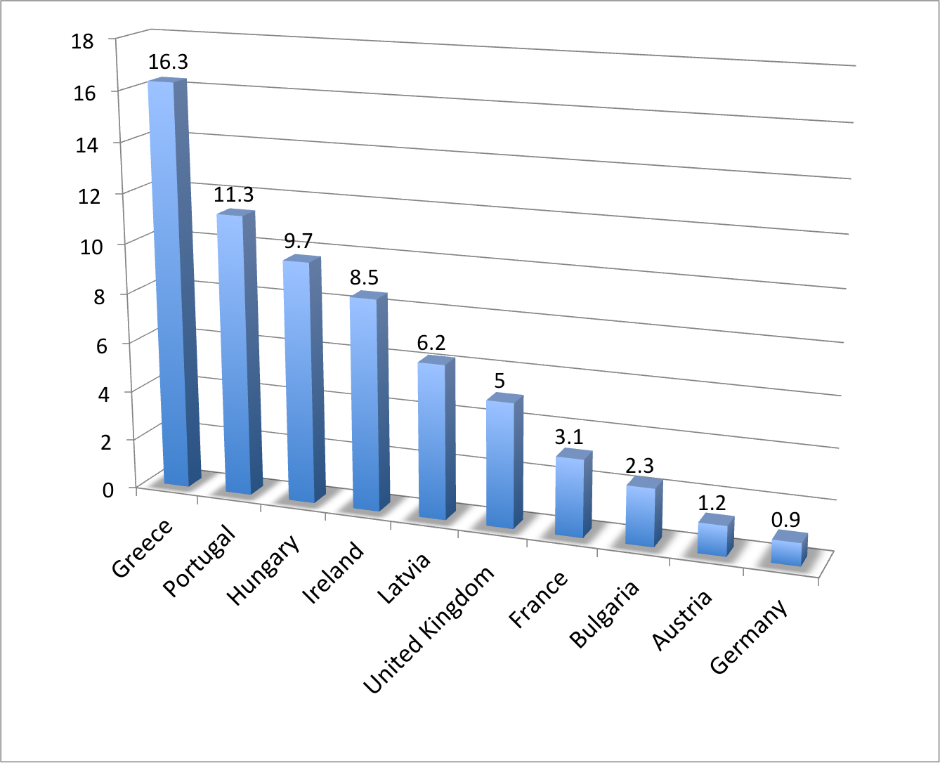 The data come from Andrew Watt’s and Sotiria Theodoropoulou’s ETUI report, (p. 14) based on a survey of country experts. Some data, from Italy and Spain most notably, are missing. This is partly based on 2011 estimates, and as we know forecasts have been all but reliable. There is more data on this on the Washington Post’s wonkblog and the Guardian writes this about the UK.